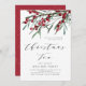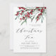 Invite your friends and loved ones to a sumptuous holiday dinner and party with this modern elegant invitation featuring watercolor winter berries, botanical leaf stems, and sophisticated script lettering of "Christmas Party".