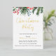 Modern Script Winter Holly Berries Christmas Party Gold Foil Invitation - An elegant and festive Christmas Party invitation with watercolor winter greenery in classic red and green holiday colours with gold foil lettering and accents. All text is editable.