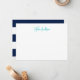 This modern note card features modern script for your name/business name with a white stripes and customisable back background colour (simply click customise to change the background colour).