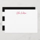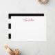 This modern note card features modern script for your name/business name with a white stripes and customisable back background colour (simply click customise to change the background colour).