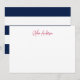 This modern note card features modern script for your name/business name with a white stripes and customisable back background colour (simply click customise to change the background colour).