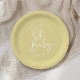 Modern Script Yellow Oh Baby Simple Baby Shower Paper Plate
