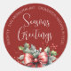 Modern SEASONS GREETINGS Red Bow Script Classic Round Sticker