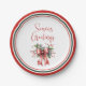 Modern Seasons Greetings Script Holly Bow Paper Plate