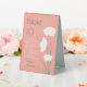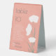 Guide your guests to the right table at your wedding, dinner party, or other special occasion with these high quality table tents! These modern 6" x 8" wedding table tent and guest names cards feature a minimalist flower design on a coral pink background with the table header and number in large letters modern letters.