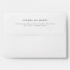 Clean, spaced serif typography on pure white — your names and return address printed exactly where they should be. No fuss, no ornament. Just a confident, considered type that sets the tone before the envelope is opened.