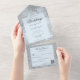 Your wedding day is a once-in-a-lifetime event, and it deserves an invitation that reflects the unique and modern love story you share. This pale ice blue snowflake design combines contemporary elegance with a touch of winter magic, setting the stage for a truly unforgettable celebration. The All-in-One wedding invitations are both beautiful and practical by combining the wedding invitation with an easy to remove perforated RSVP postcard. They are also quick and easy to prepare for mailing. Simply address the invitation, fold the back flap and seal with the included clear stickers. Once your guests receive the pre-addressed invitation they simply tear off the perforated RSVP card and drop it in the mail. The addition of the QR code allows your guests to easily access your wedding website for information including reception details and dinner choices!