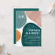 Modern Shapes orange teal pink monogram wedding In Invitation
