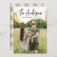 Modern holiday card featuring your family name displayed at the top of the design in a black handwritten signature script. Personalise the card with a custom greeting, the year, and your full-bleed vertical photo. The trendy holiday card reverses to display a rustic cream and olive green buffalo plaid pattern.