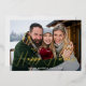 Modern holiday photo card featuring "Happy Holiday" displayed in a handwritten gold foil script overlaying your horizontal photo. Personalise the front of the foil holiday photo card with your family name and the year. The card reverses to a gingerbread and white snowflake pattern.