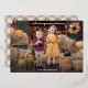 Cute Thanksgiving photo card featuring "Happy Thanksgiving" displayed in a handwritten gold foil handwritten script overlay. Personalise the card with your favourite horizontal photo and your family name in white lettering. The card reverses to display a white plaid pattern with a kraft paper background