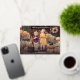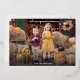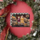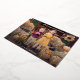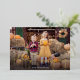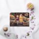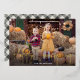 Cute Thanksgiving photo card featuring "Happy Thanksgiving" displayed in a handwritten gold foil handwritten script overlay. Personalise the card with your favourite horizontal photo and your family name in white lettering. The card reverses to display a cream and black watercolor plaid background.
