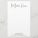 Personalised stationary with your monogram name in a modern signature script and return address, phone, email address, etc., in simple typography.