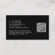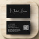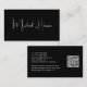 Professional minimal modern black business card with your name in a stylish white signature script on the front and your contact information (such as email, telephone numbers, firm name and mailing address) in clean, simple white typography on the back. Add your website's URL address to create a scannable QR code.