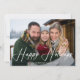 Modern holiday photo card featuring "Happy Holidays" displayed in a white handwritten script overlaying your horizontal photo. Personalise the front of the holiday photo card with your family name and the year. The card reverses to a red and white snowflake pattern.