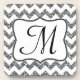 Modern Silver Glitter Chevron Zig Zag Stripe Fabric Print Pattern Monogram Initial Drink Coaster Personalised