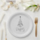 Modern silver ball Christmas tree, black stars, and the words Merry Christmas in chic lettering on a pale grey background, these holiday paper plates are perfect for any Christmas occasion. MATCHING items in our collection.