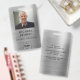 Custom Modern Silver Employee Photo Badge. Personalise this corporate id card badge with your employees name, position, photo and your company logo on the front side and your custom info text on the back side. The employee photo works best in square format. Your logo works best as a png square format with transparent background. The placeholder logo you see on the badge will be completely replaced with your own logo design.