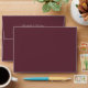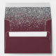 The inside of this elegant modern wedding invitation envelope features a silver faux glitter design on a burgundy background. Customise the back flap with the names of the bride and groom in silver grey handwriting script and return address in copperplate font on a burgundy background.