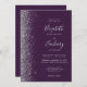 The left-hand edge of this elegant modern wedding invitation features a silver faux glitter design. The customisable text combines silver grey handwriting, copperplate and italic fonts on a dark purple background. The reverse side provides space for wedding details on a solid dark purple background, along with a QR code guests can scan to visit your website and RSVP, which saves the cost of printing and mailing separate RSVP cards.