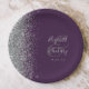 Modern Silver Glitter Dark Purple Wedding Paper Plate