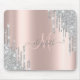 Modern Silver Glitter Drips Rose Gold Monogram Mouse Pad