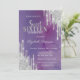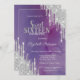 Modern Silver Glitter Drips Violet Sweet 16 Invitation