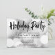 Trendy holiday party invitation with a silver bokeh glitter lights background and modern script font. Designs are flat printed graphics - NOT ACTUAL GLITTER.