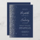 Modern Silver Glitter Navy Blue QR Code Wedding Invitation