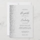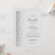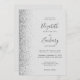 The left-hand edge of this elegant modern wedding invitation features a silver faux glitter design. The customisable text combines charcoal grey handwriting, copperplate and italic fonts on a pale grey background. The reverse side provides space for wedding details on a solid grey background, along with a QR code guests can scan to visit your website and RSVP, which saves the cost of printing and mailing separate RSVP cards.