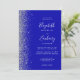 The left-hand edge of this elegant modern wedding invitation features a silver faux glitter design. The customisable text combines white handwriting, copperplate and italic fonts on a royal blue background. The reverse side provides space for wedding details on a solid royal blue background, along with a QR code guests can scan to visit your website and RSVP, which saves the cost of printing and mailing separate RSVP cards.