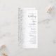 The left-hand edge of this elegant modern wedding program features a silver faux glitter design. The customisable text combines grey handwriting script and sans serif font on a white background.