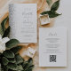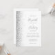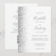 The left-hand edge of this elegant modern wedding invitation features a silver faux glitter design. The customisable text combines grey handwriting, copperplate and italic fonts on a white background. The reverse side provides space for wedding details on a solid white background, along with a QR code guests can scan to visit your website and RSVP, which saves the cost of printing and mailing separate RSVP cards.