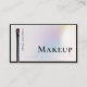 Stand out from the crowd with our elegant business cards. This unique design features a mesmerising holographic background and minimalistic design, perfect for makeup artist and cosmetologists. Easily display your contact details, website, and social media handles, leaving a lasting impression on potential clients. Note: The holographic details are simulated in the artwork. There will be no actual holographic shine effects when printed.