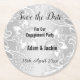 MODERN SILVER LACE SAVE THE DATE COASTER