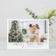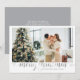 Modern Silver Merry Christmas Heart Script Photo Holiday Card