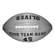 Modern Silver Metallic Player Team Name Number Football. The background is a faux silver metallic texture. This custom and personalised football is a perfect gift for a football player, teammate, coach,... Personalise it with your team name, number and your name. A great keepsake to remember your favourite sport.