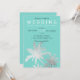 Modern silver palm trees teal elegant wedding invitation