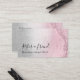 Elegant and stylish makeup artist referral card featuring faux pink rose gold glitter marble texture, silver texture and elegant calligraphy font.