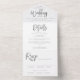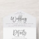 A modern all in one script wedding invitation with large silver foil metallic calligraphy and a tear-off response card. Click the edit button to customise this design.