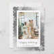 Cute silver snowflake photo Happy Holidays card featuring snowflakes on a metallic silver background. Easily personalise this silver photo holiday card with your photo and text.