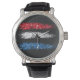 * United States Simple Red White Blue abstract American Flag on a black face MEN's WATCH