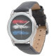 * United States Simple Red White Blue abstract American Flag on a black face patriotic MEN's WATCH