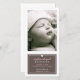 Perfect for your new baby girl. With a crisp white border, a background of soft mocha brown, text in pretty pink and white, and adorned with a little heart, this simply adorable birth announcement is modern and pure. Introduce your new arrival with a sweet photo and all the important details arranged on this vertical format photo card for a lovely keepsake they're sure to treasure.