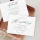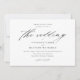 An Elegant Simple Black and White Wedding Invitation featuring modern script and classic text. The back has a place for additional details like reception, accommodations and wedding website. Click the edit button to customise this design.