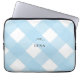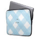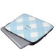 Modern 13" neoprene laptop case with black bow on pale blue gingham buffalo check background. Personalize with any text you like on the front.
