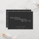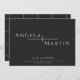 These modern minimalist 7" x 5" wedding invitations feature placeholders for the wedding couple first names, the date and time, location on a black background with ivory text. The back is a black background with a fine line pattern.