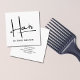 Minimalist fully customisable black and white business card template with bold hair text. Elegant design, perfect for hairstylist, hairdresser.