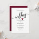 Modern Simple Black, White BURGUNDY Heart Wedding Invitation