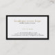 Elegant double-sided black and white reversible colours with white and black border. Black front with white border. White and gold suggested text colours. back is white white black bored and black text and gold accent. Simple modern card for consulting professional.